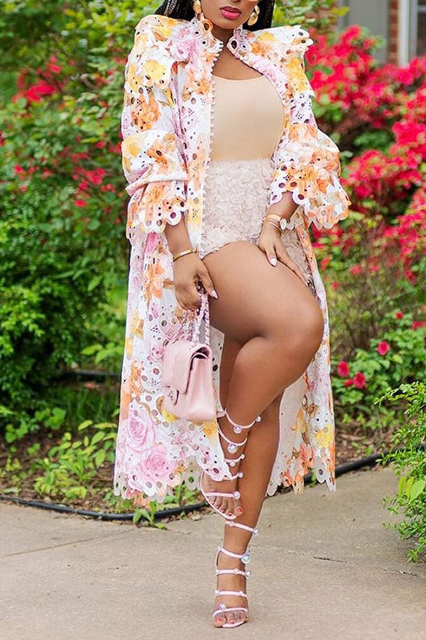 Floral Print Lace Stylish Single Breasted Midi Dress