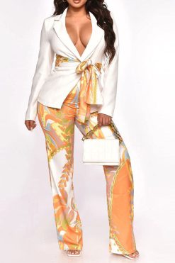 Solid Color Pretty Bowknot High Split Dress Suit
